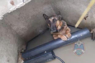 Овчарку, провалившуюся в люк, спасли в Ленобласти