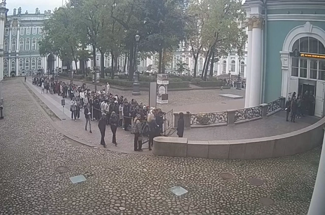 На входе в Эрмитаж образовались длинные очереди. Сегодня музей можно посетить бесплатно в честь Дня учителя.