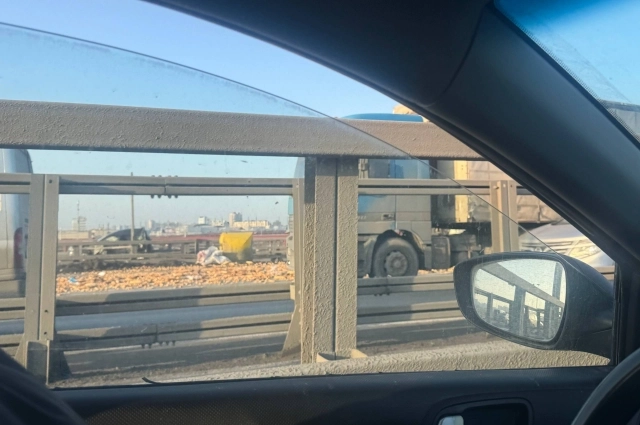 На КАД в Санкт-Петербурге из «Газели» на проезжую часть высыпался хлеб. Инцидент произошёл над развязкой с Витебским проспектом по внутреннему кольцу, сообщает корреспондент spb.aif.ru.