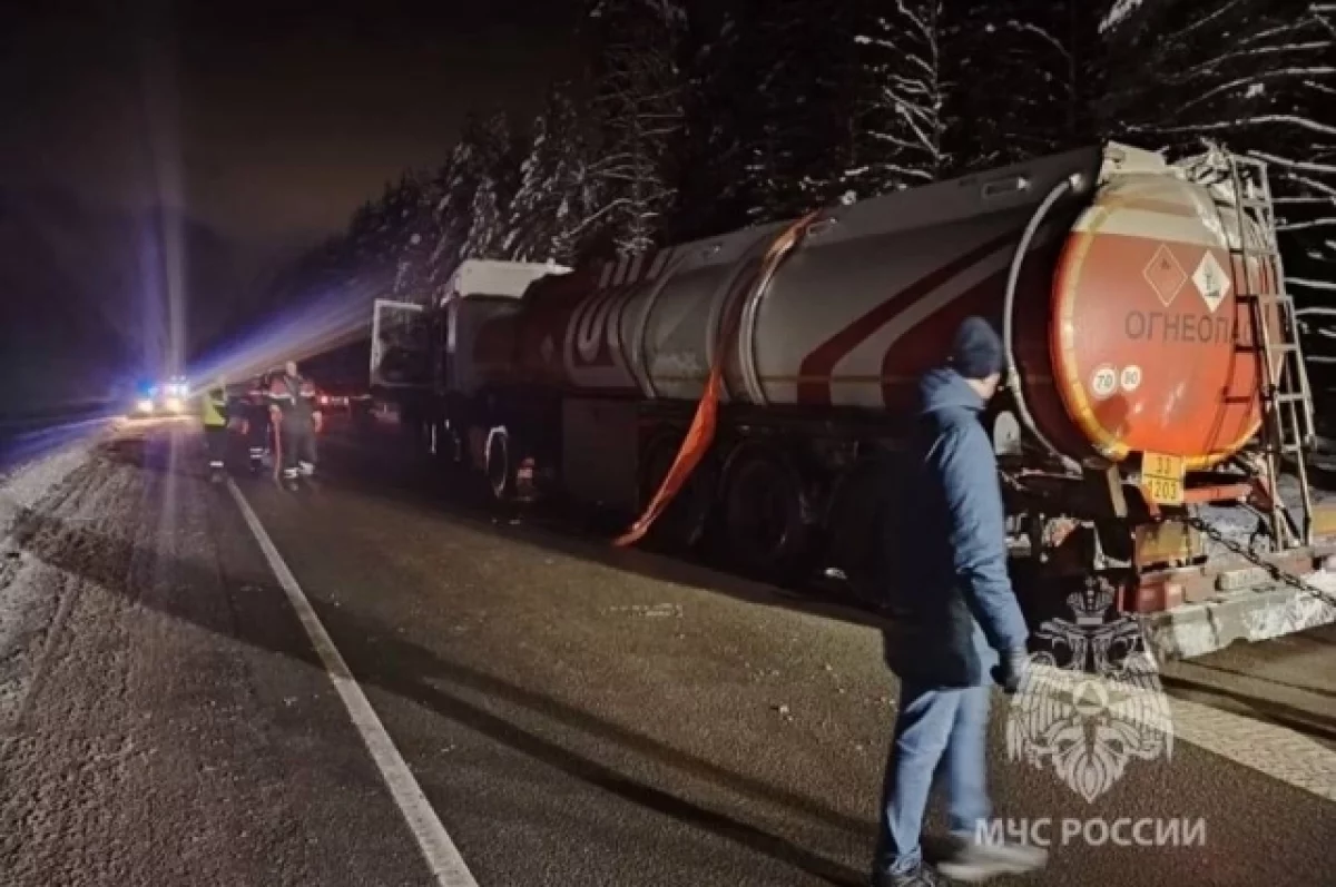 В Ленинградской области случилось ДТП с бензовозом. Это произошло в Тихвинском районе, рядом с деревней Усть-Шомушка вчера вечером, 15 января.