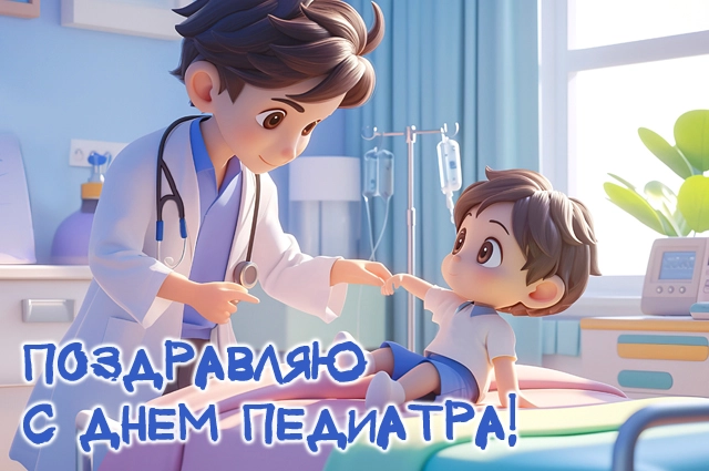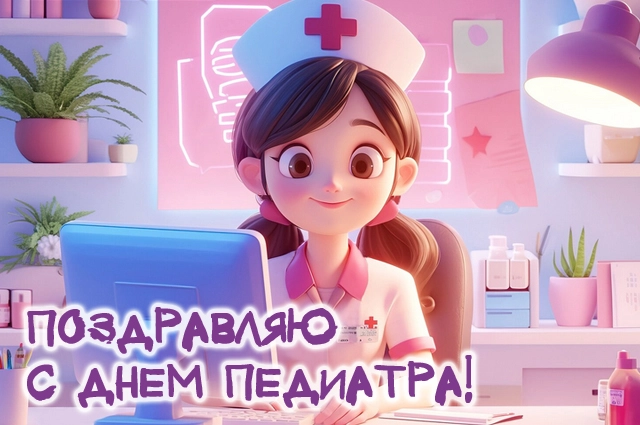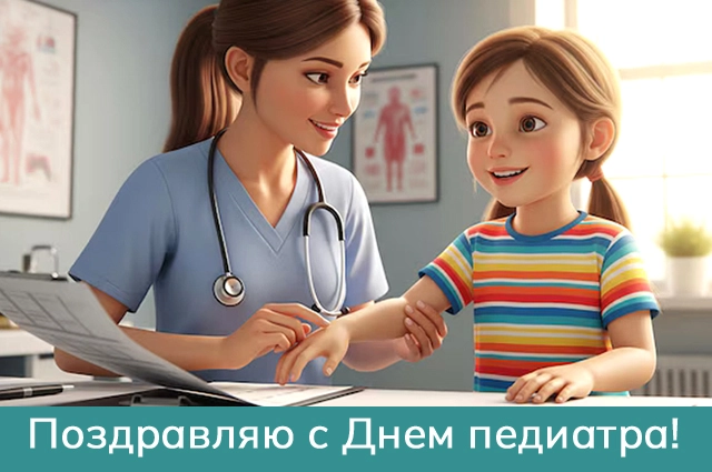 Поздравить врачей-педиатров с их профессиональным праздником можно открыткой.