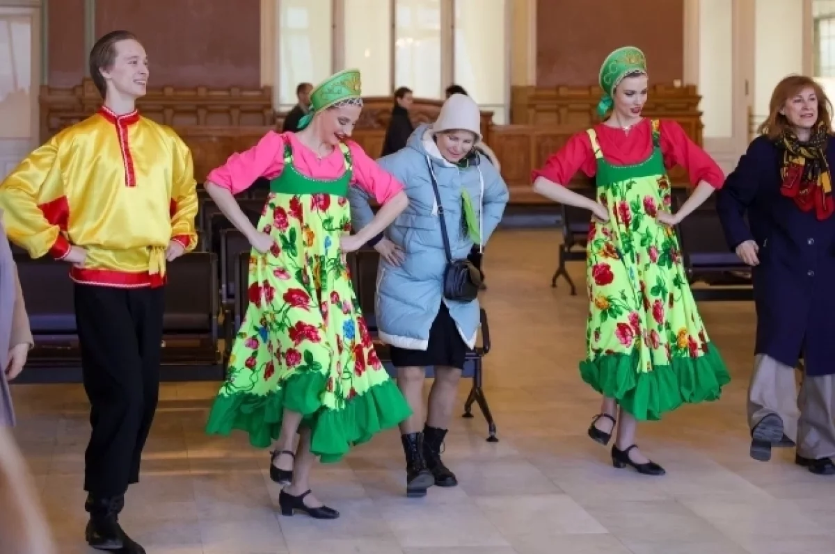 Пары в косоворотках и сарафанах вышли из толпы пассажиров и начали танцевать «Калинку-малинку». Постепенно вовлекали в это действо петербуржцев и гостей города. Представление, организованное «Петербургским дневником», стало своего рода анонсом пятой юбилейной городской премии «Город в лицах». Она пройдёт в текущем году в Картинном зале Витебского вокзала.