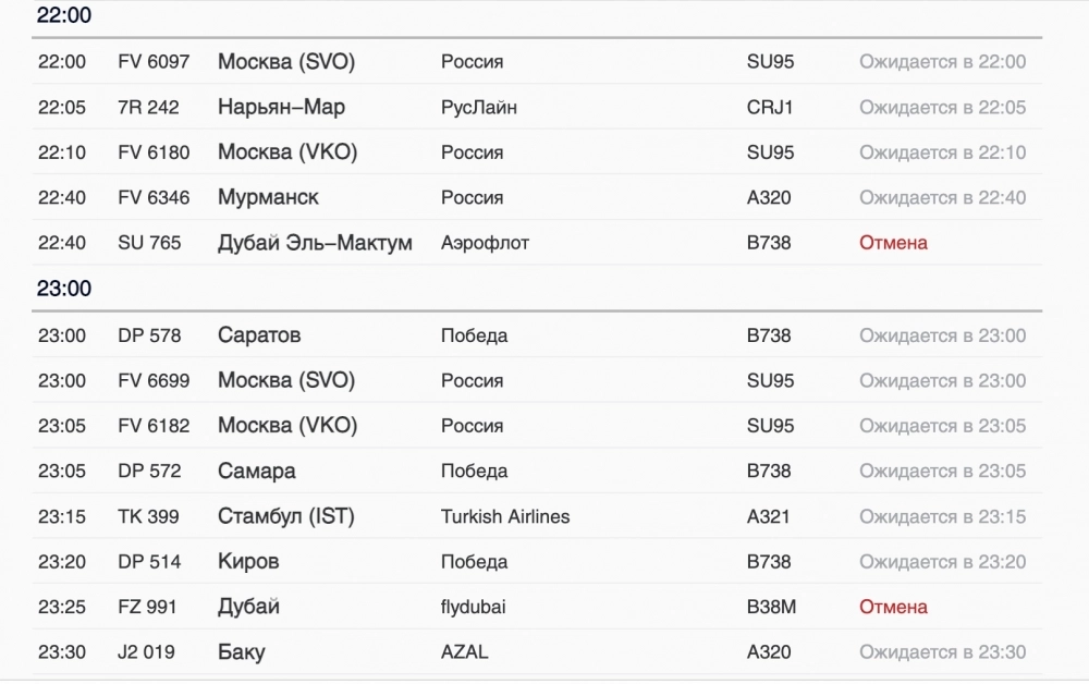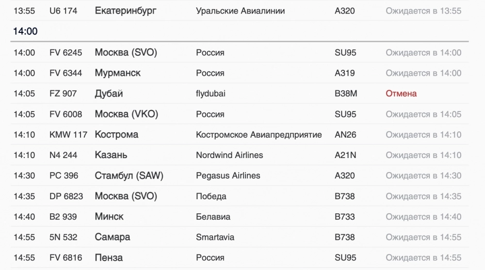 Авиакомпания flydubai должна была доставить сегодня пассажиров из Объединенных Арабских Эмиратов в Северную столицу к 14:05. Еще один рейс ожидали в Пулково от «Аэрофлота».