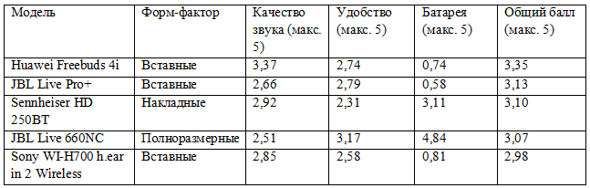Рейтинги наушников с лучшим шумоподавлением и другие детали исследования смотрите здесь.