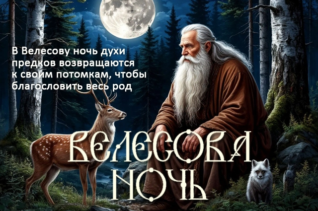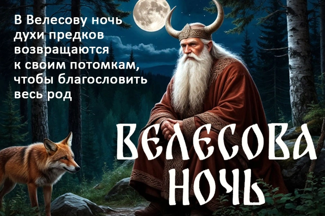 Велесова ночь — это время погружения природы в сон. Славяне старались к этому времени завершить все работы в поле, чтобы дать земле спокойно уйти на отдых до ближайшей весенней оттепели. Ночь перехода от осени к зиме была непростой: в момент, когда Белобог передавал колесо года своему брату Чернобогу, граница между нашим миром (Явью) и миром духов (Навью) истончалась, в дом мог зайти незваный гость из потусторонней вселенной. Несмотря на то, что бог Велес (покровитель домашнего скота и ворожбы) был стражем на пути между Явью и Навью, простой народ тоже должен был быть осторожным.