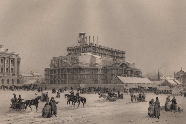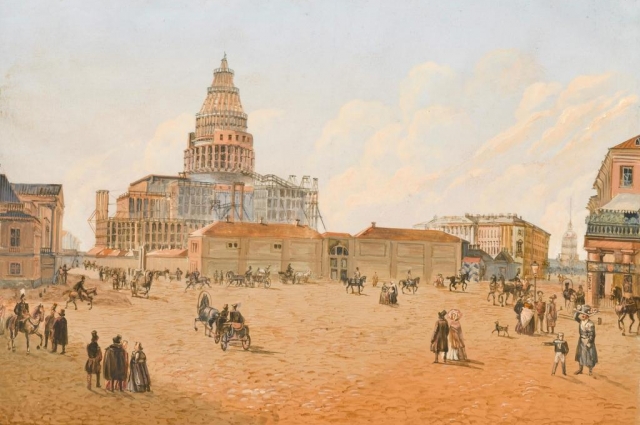 Возведение собора шло 40 лет (Смольного – 87 лет, прим. ред.) Сменяя друг друга, трудились тысячи ремесленников и рабочих. Роспись, убранство были поручены самым известным художникам своего времени. Происходящее стало не только грандиозной стройкой, но и испытательным полигоном для новейших технологий. Одна только забивка 10,7 тысяч свай заняла пять лет. На стройплощадке Исаакия также проложили железнодорожные рельсы и это задолго до открытия в России первой железной дороги. Крупные грузы, камень, древесину и песок, доставляли по воде, на набережной их выгружали на платформы на конной тяге и по рельсам везли к месту строительства.